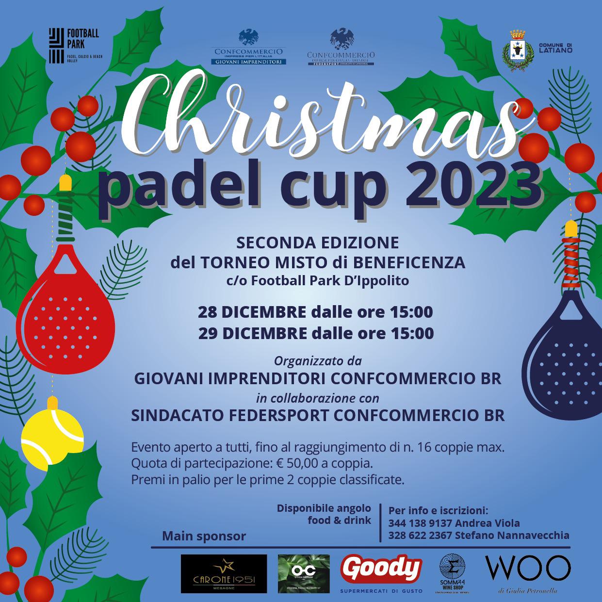 I Giovani Imprenditori Confcommercio Brindisi in collaborazione con il sindacato Federsport Confcommercio Brindisi, organizzano – con il patrocinio del Comune di Latiano – la SECONDA EDIZIONE DEL TORNEO MISTO DI PADEL A SCOPO BENEFICO. Il torneo si svolgerà presso il Football Park D’Ippolito a Latiano nei giorni 28 e 29 Dicembre a partire dalle ore 15:00. L’intera somma raccolta verrà devoluta in BENEFICENZA all’iniziativa “Il Pranzo Solidale” organizzata dal Comune di Latiano che si svolgerà il 26 Dicembre 2023 e all’Auser di Mesagne in beni di prima necessità.